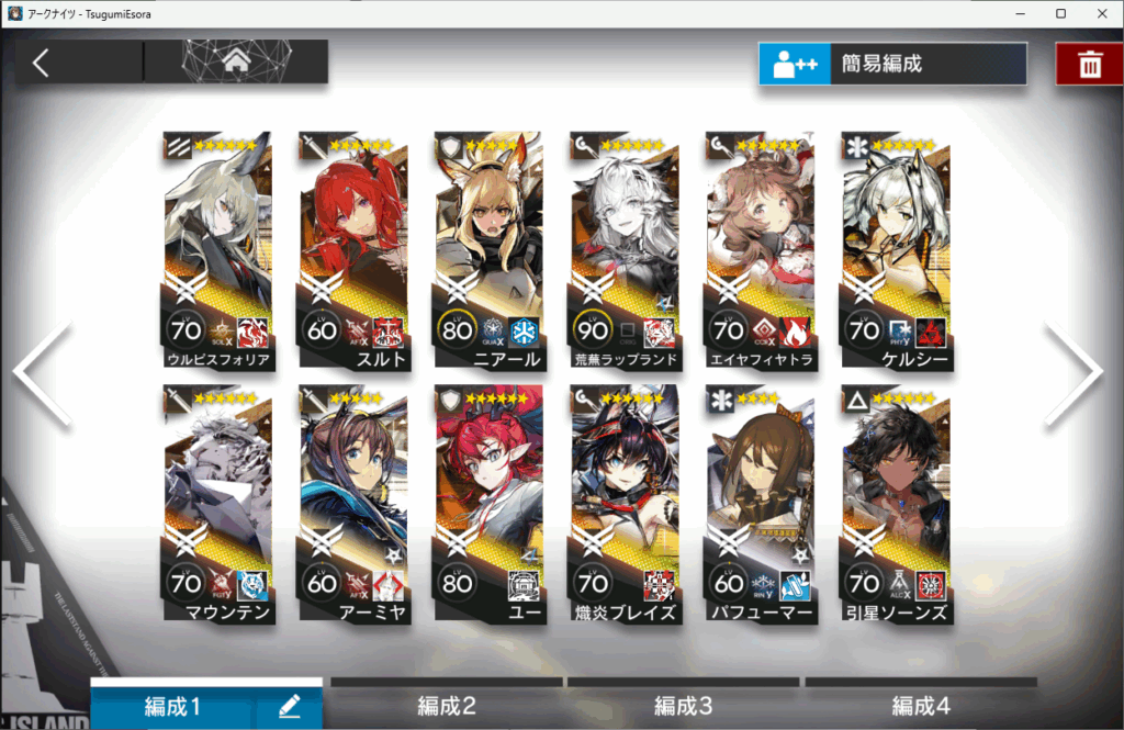 戦闘面。環境は通常実戦で進めています。加入オペを完凸しようとすると全て厄難奮戦でこなす必要があるとは聞いていますが、そこまでの世話は焼けないな……の線引きを感じる。具体的には副砲があるとそれだけで非常に息苦しい面になってしまう……